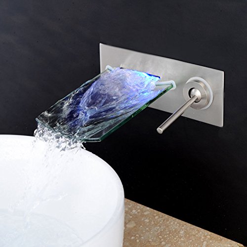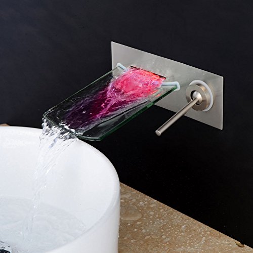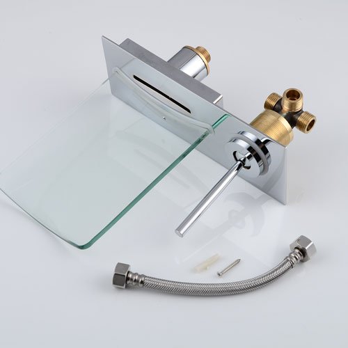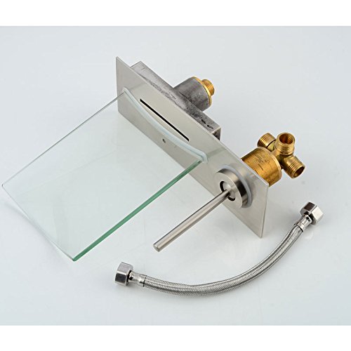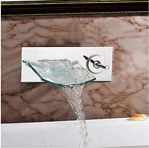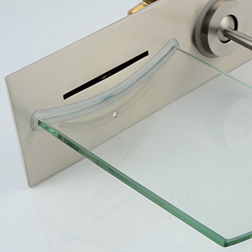 -. Title : Wovier Glass Chrome/Brushed Nickel/Oil Rubbed Bronze Waterfall Bathroom Sink Faucet,Two Handle Three Hole Vessel Lavatory Faucet,Widespread Basin Mixer Tap Tall Body