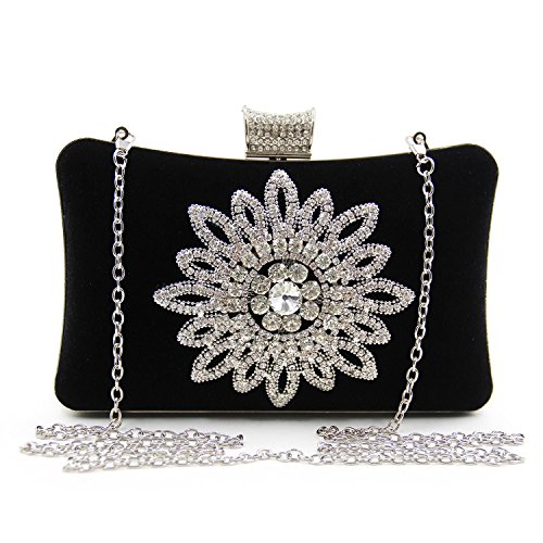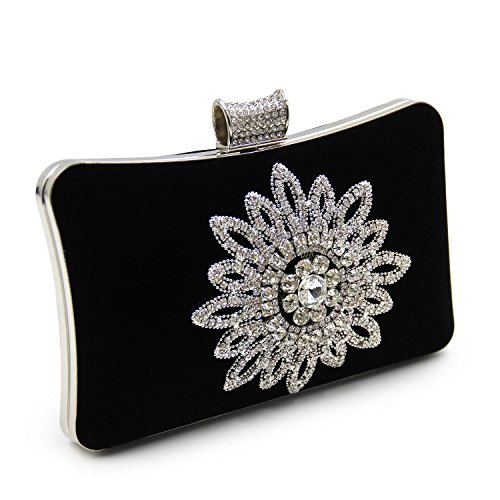(missfiona)/Accessories/Handbags/DIRECT FROM USA/Missfiona Women's Jeweled Flower Velvet Evening Clutch Bag Prom Dinner Hardbox Handbag