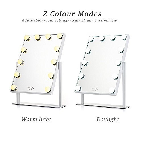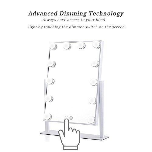 WanEway Lighted Vanity Mirror with 12 x 3W Dimmable LED Bulbs and Touch Control Design, Hollywood Style Makeup Cosmetic Mirrors with Lights , White