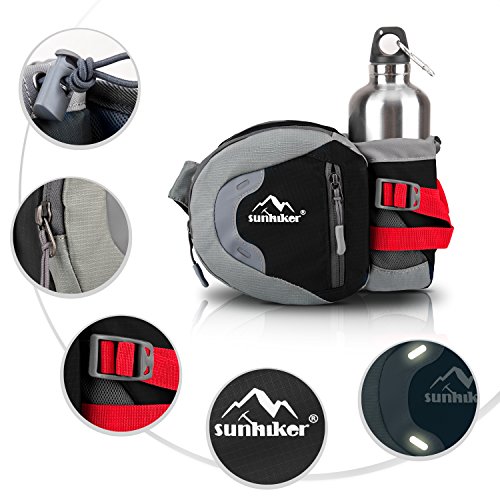 Waist Bag, Sunhiker Sports Water Resistant Waist Pack with Water Bottle (Not Included) Holder, Running Belt Bag Pouch Fanny Pack for Hiking Running Cycling Camping Climbing Travel