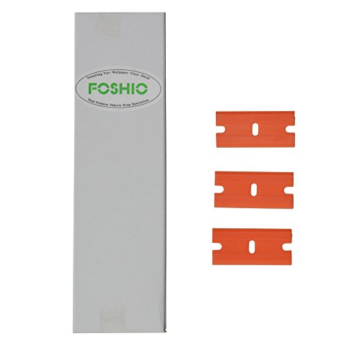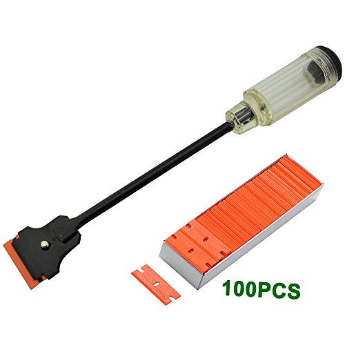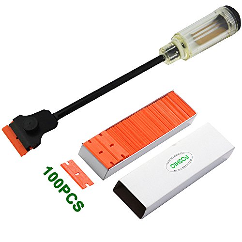 FOSHIO Auto Window Tinting Clip Extension Scraper Long Reach Handle Razor Blade Scraper Sticker Decal Label Gasket with 100PCS Double Edge Plastic Blade