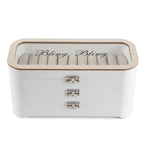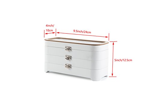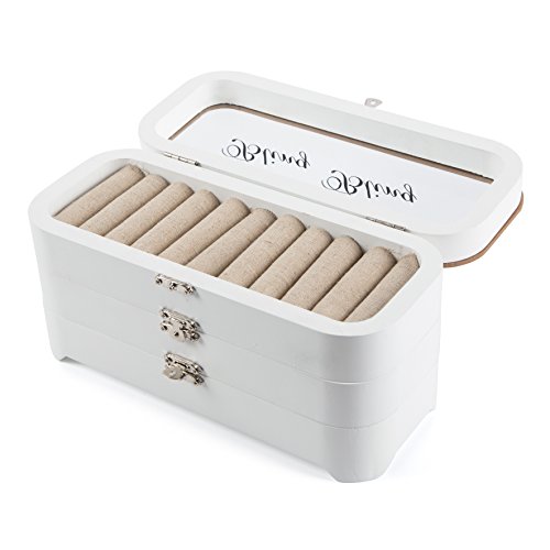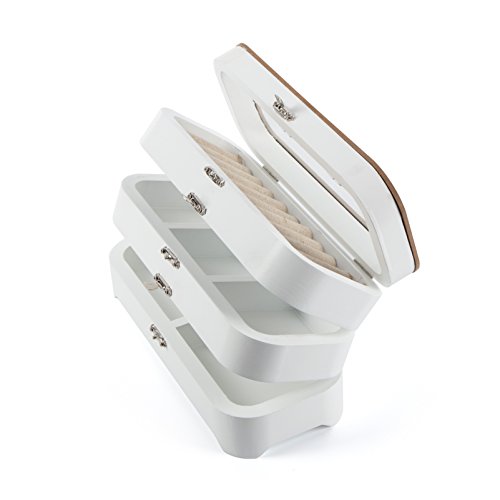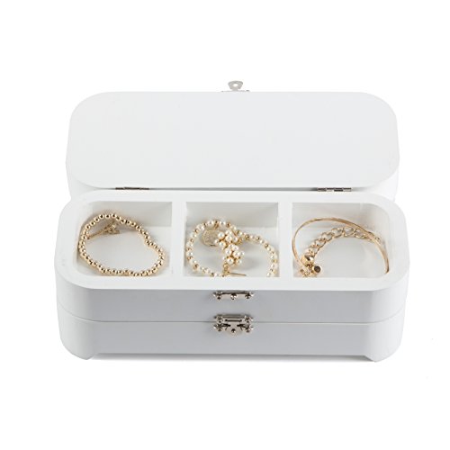 LUCKUP Handmade Wooden Jewelry Box, Layered Jewelry Box With Simple Lock,necklace bracelet ring display box, white