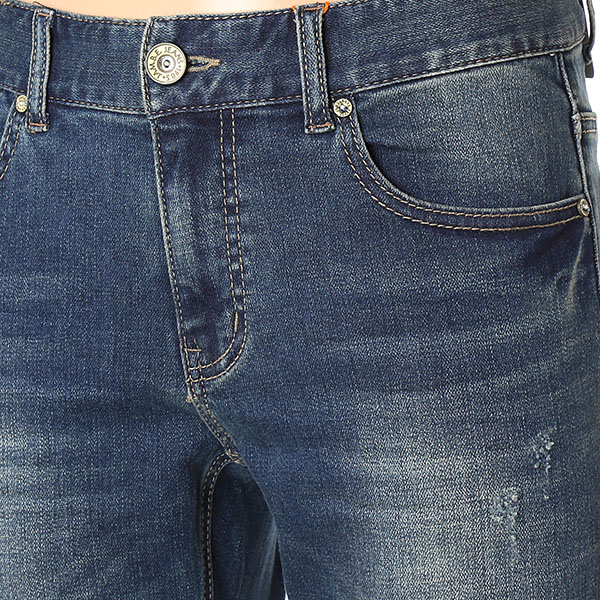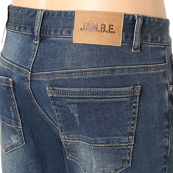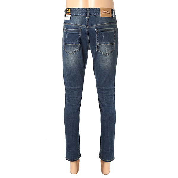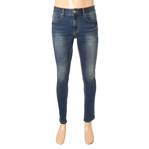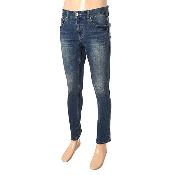 무난한 MB톤 인디고 칼라에 바이오스톤 캣엠보와 염료 착색으로 포인트를 준 남성용 TA핏 데님 스타일.