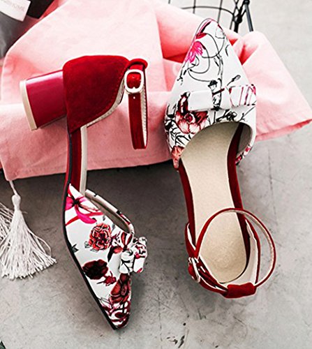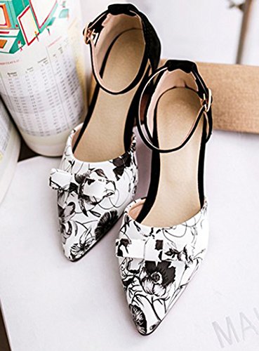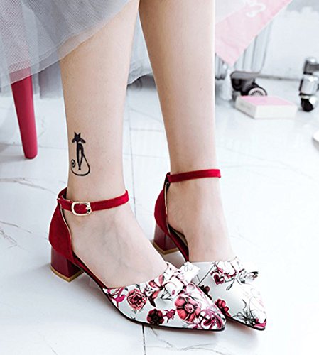 Binding : Apparel Product Description This pair of shoes is for women, girls and young ladies. You will look stylish and sexy when wearing them. The heels is about 1.6 inches. You will look slimmer and slender in their super mid heels. So you will not feel too tired when walking with them. This pair of shoes features bowknot and ankle strap. The design of pointy toe will make you more cute and charming. You will look unique in their flower design. The sole is made of high quality antiskid rubber. You will feel comfortable in their soft bottom. They are of high quality and durable. Come and take them away. 0