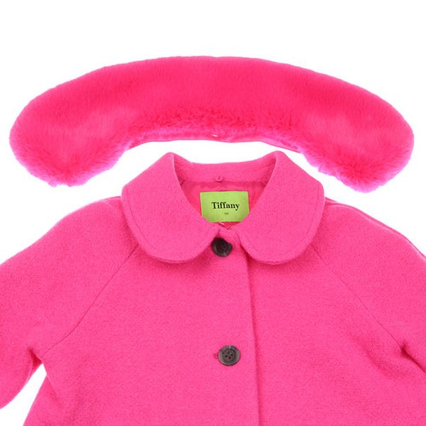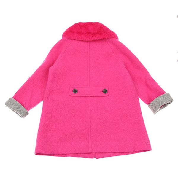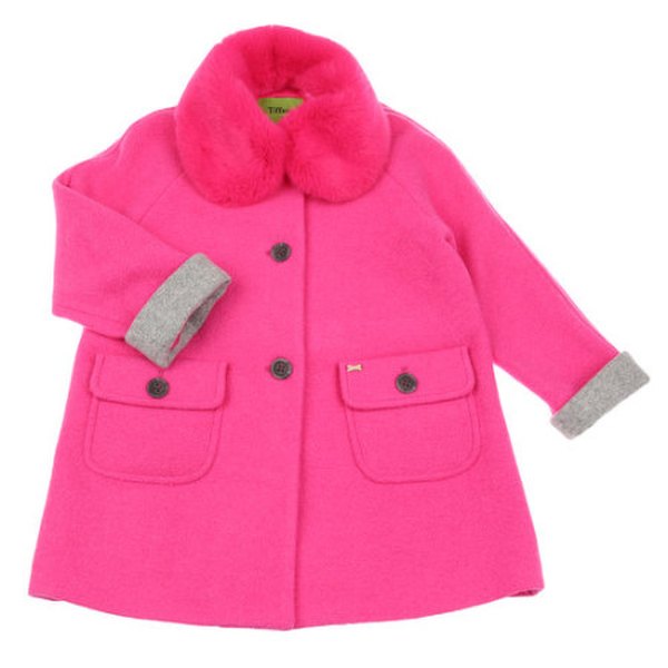 -진핑크 모직 코트로 소매 그레이 롤업 배색이 포인트인 코트입니다.