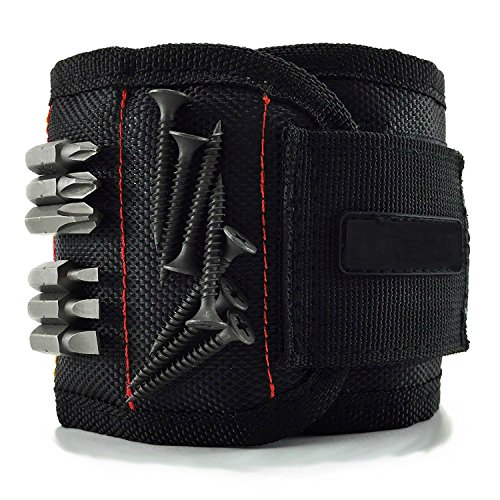 ByMagnet, Magnetic Wristband, Screws, Nails, Drill Bits Magnetic Wrist Band with Super Strong Magnets for Holding Screws Powerful Magnetic Bracelet Perfect for Diy Projects Ideal for Men (Black)