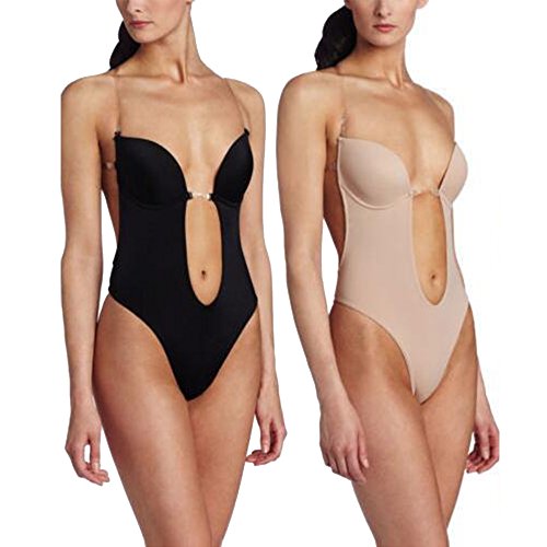 -. Feature : This body suit with open back and thong.For coverage with no seams or straps in sight,build a foundation under your most challenging dresses with this low-plunging body suit by Fashion Forms. / Clear,detachable,adjustable straps can attach at any point along back to accommodate different fashions.Contour,demi,underwire cups with soft felt interior,enhance the breast to give you extreme cleavage. / Low V-neckline plunges below belly button and features clear removable strap at center front.Extra lining at seamless front panel.Seamless edges disappear under tops and dresses. / It has gel strip along the edges so the garment will not move and 4 loops each side for straps adjustment,great for wedding gowns,bride's maids, proms too.And it is thinly padded underwire cups. / Please Check Size Choose:32/S:【32/70A,32/70B,32/70C,34/75A,34/75B】34/M:【34/75C,34/75D,36/80A,36/80A,36/80B】 36/L:【36/80C,36/80D,38/85B,38/85C】38/XL:【38/85D,40/90B,40/90C,40/90D】