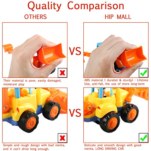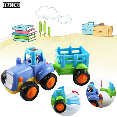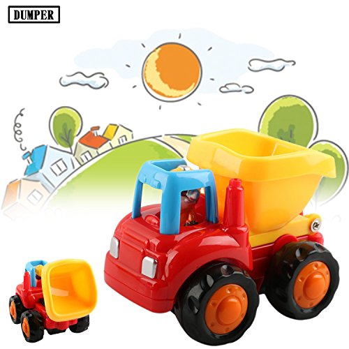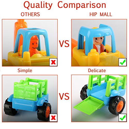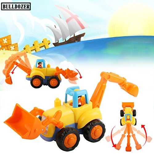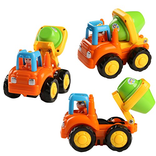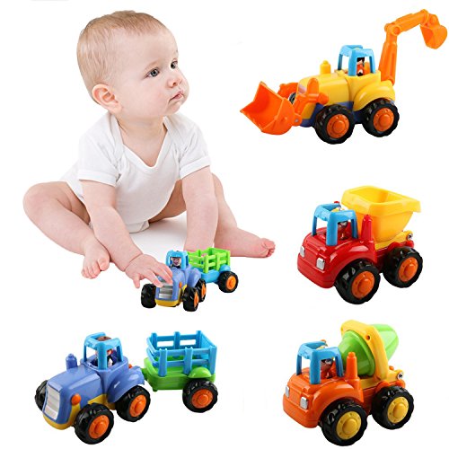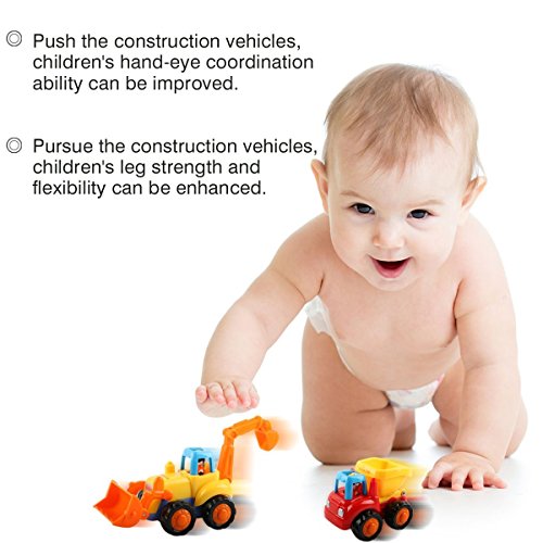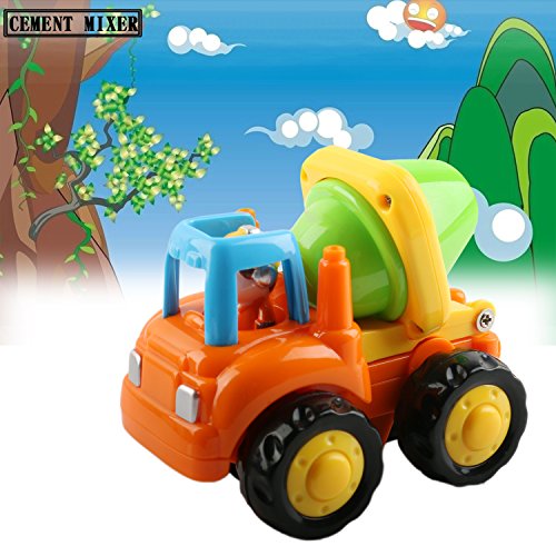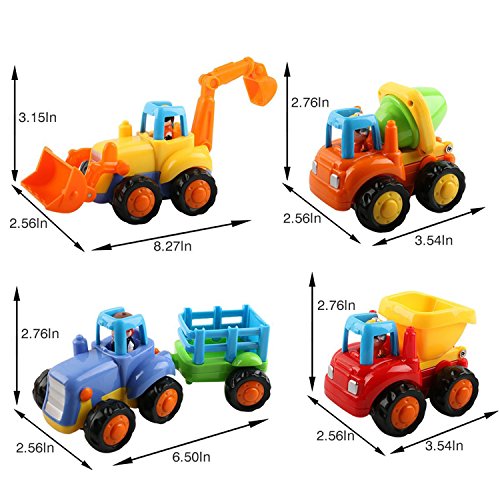 PACKAGE INCLUDED - A complete construction site in a box. Pull the car back, then the car go fast, suitable for playing indoors and outdoors. Including 1 Dumper, 1 Push and Go Tractor,1 Bulldozer and 1 Mixer Truck with beautiful colors.
