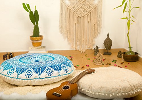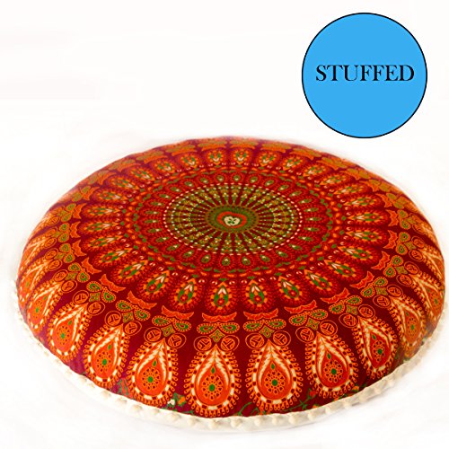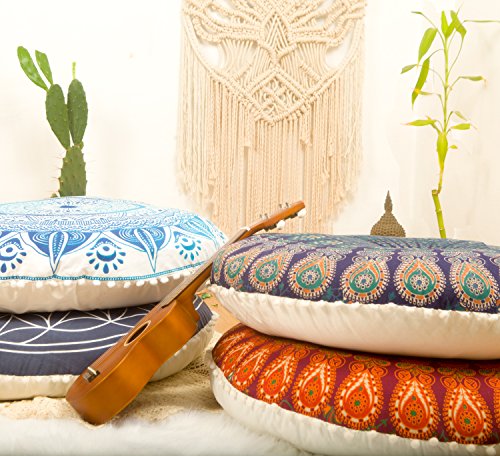 Add a splash of color with this rich and stunning stuffed floor cushion seat brought to you by Mandala Life ART. A perfect large floor pillow and pouf ottoman, it will liven up your living room, den, dining room, TV room, bedroom or guest room. The exotic mandala design in a wide selection of colors is hand block/screen printed with all-natural vegetable-based dyes onto 100% organic cotton material. (Variations arising from the hand printing process attest to the unique beauty of each product.)