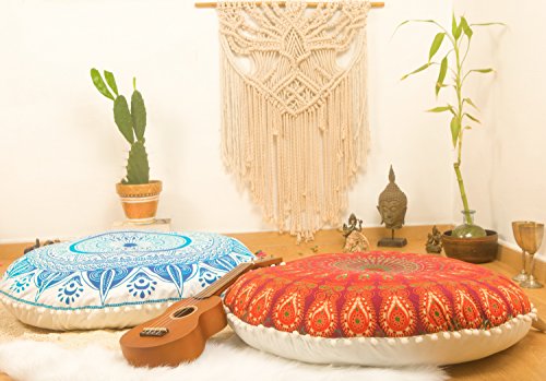 The 30” pouffe pillow cover , After filling , it will measure 24” in diameter and 6” high - just the perfect size for maximum comfort! With durable stitching, this Bohemian Room Décor accent piece will last you for many years to come. Give as a unique, unforgettable gift for any occasion.