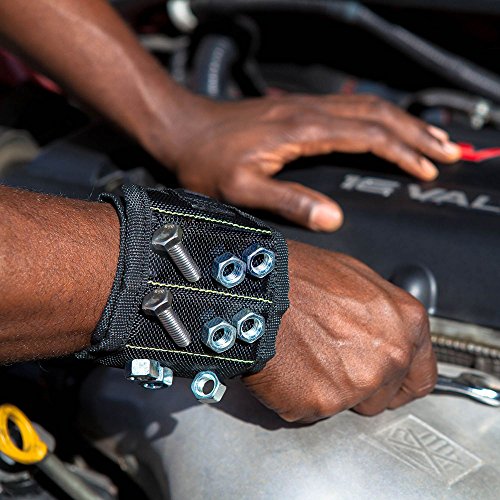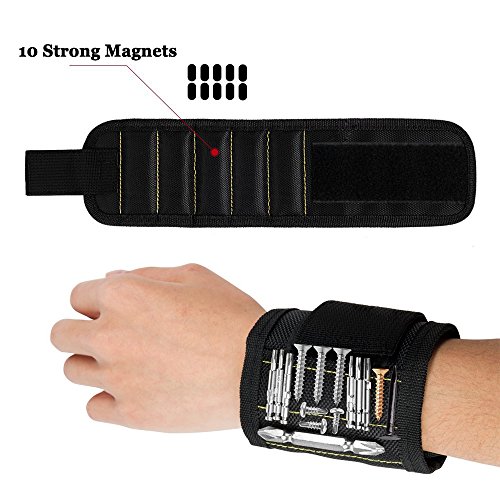 - Strong Magnetic with 10 Powerful Magnets: The Magnetic Wristband holds small metal objects, small tools, screws, nails, bits, bobby pins, bolts, washers, pins, fasteners and much more.