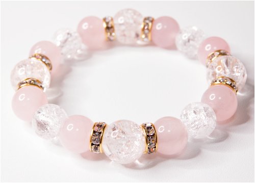 팔찌1점 파우치 부착 옥수:로즈 쿼츠 약10mm을 8알,크랙 수정 약10mm을 4알,약12mm을 4알