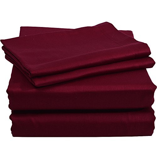 Solid Pattern 100% Egyptian Cotton Bedding Collection sheet Set (1 PC Flat Sheet, 1 PC Fitted Sheet & 2 PC Pillowcases) Fits upto 15 Inches Deep Pocket 400 Thread Count ( Queen , Burgundy )