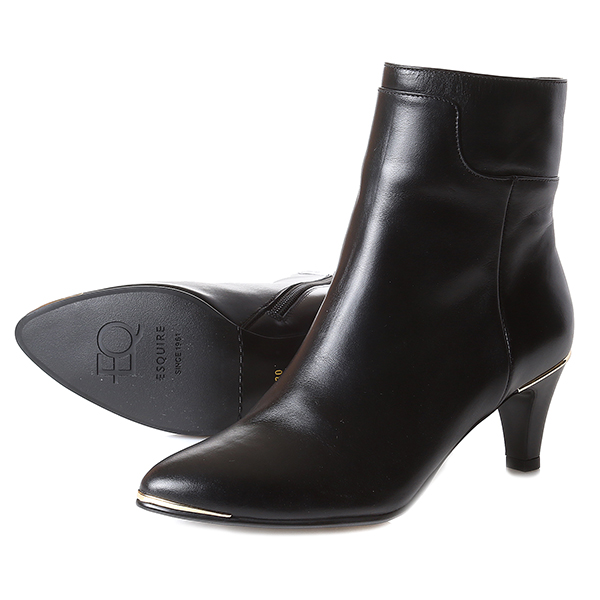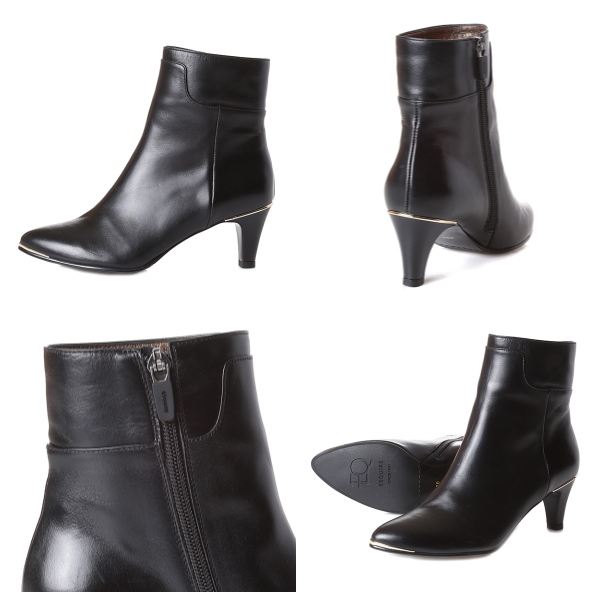 테이퍼드 쉐입의 여성스러운 라스트와 굽으로 기본형의 드레스 앵클 부츠로 다양한 스타일에 매칭하기 편한 아이템. 발목 안쪽의 골드 콤비로 포인트를 준 앵클부츠.