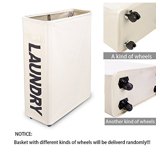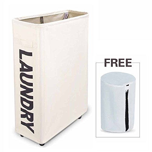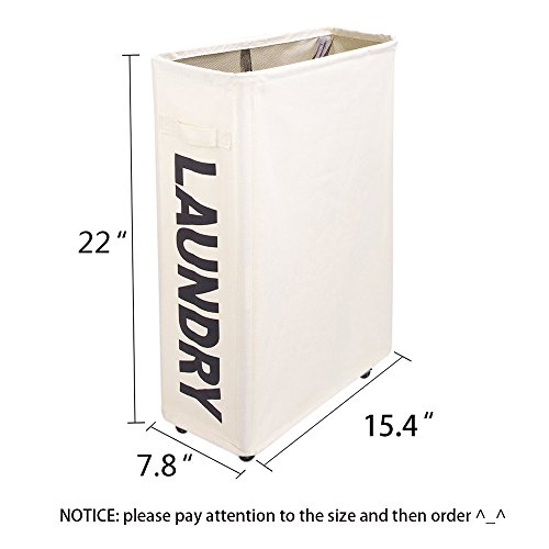 SLIM AND TALL SHAPE WITH WHEEL DESIGN ~This shape can perfectly fit in the small space between the washer and dryer or a narrow cabinet space. Mesh with a strap on the top can be dustproof for your clothes and prevent clothes from falling. Wheels under the hamper make it easy to transport.