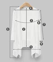 | 尺码 | ①前衣长 | ②后中长 | ③胸围 | ④前下摆宽 | ⑤后下摆宽 | ⑥肩宽 | ⑦袖长 | ⑧袖臂围 | ⑨袖口围 | ||