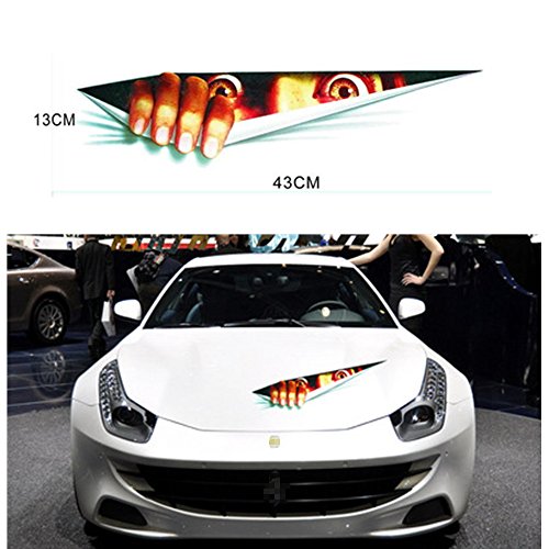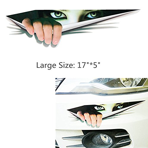 • One piece of 3D eyes peeking monster vinyl sticker • Universal fit for any cars, SUVs and trucks • Durable, waterproof • Easy Installation, Simply peel and apply • Size: 17" x 5" Installation Note • Clean and dry the car surface • Peel the backing paper and place the sticker on the car surface • Use a credit card to scrape the surface and make sure there is no bubble • Remove the transfer film