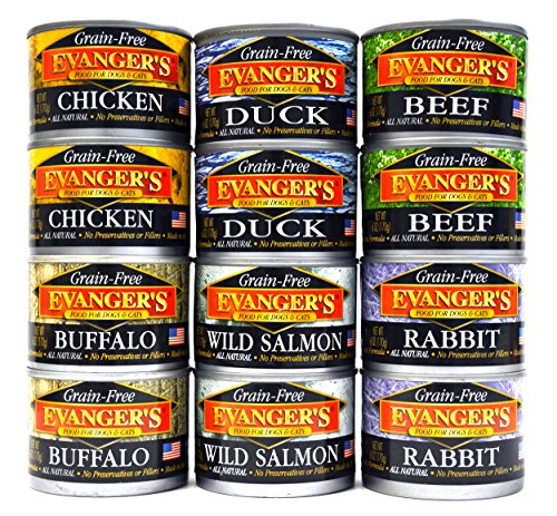 Evanger's Grain Free, All Natural Dog / Cat Food Variety Pack - 6 Flavors (Chicken, Beef, Buffalo, Rabbit, Duck, and Wild Salmon)
