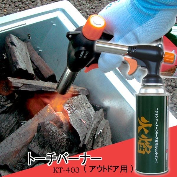 アウトドアにあると便利なトーチバーナーです。ボンベとの着脱はワンタッチ♪ |