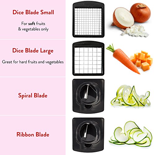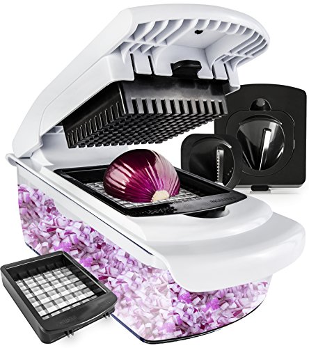 Powerful, compact and convenient The Fullstar Vegetable Chopper is a versatile all-in-one kitchen tool that is perfect for preparing salads, salsa, onions, garlic and more. It delivers fast, consistent results and sports an impressive 4-cup (1.2L) capacity. Its space-saving design eliminates the need for bulky equipment in small kitchens while its catch tray minimizes messes. The clear body lets you monitor progress as you cut up carrots, cucumbers, squash, zucchini and spices like ginger. Because it requires no electricity, the Fullstar Vegetable Chopper can be used anywhere. Designed for ease of use and durability Our Vegetable Chopper is made of long-lasting, impact resistant ABS plastic so it withstands the rigors of your busy kitchen. The 4 interchangeable blades are made of heavy-duty, rust resistant stainless steel. They tackle the toughest potatoes and the crunchiest carrots without bending, and they maintain their razor-sharpness use after use. The storage lid has integrated pusher teeth so your hands are never at risk of injury. With 1 swift lid-closing motion, your vegetables and fruits are sliced, diced and chopped to perfection. When you are finished, add the Fullstar Vegetable Chopper to the top rack of your dishwasher for easy clean-up. Customer Satisfaction is our top priority Fullstar insists on the highest quality materials and manufacturing processes to bring you superior home kitchen accessories. We confidently offer a Money Back Guarantee on our Vegetable and Food Chopper. In the unlikely event that it does not perform as promised, return it for a 100% refund of your purchase price. Breeze through the toughest chopping tasks quickly and safely. Add the Fullstar Manual Vegetable Chopper to your cart today. 0 |