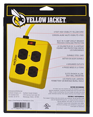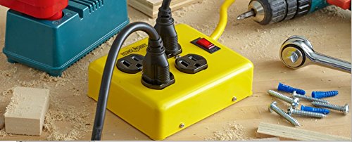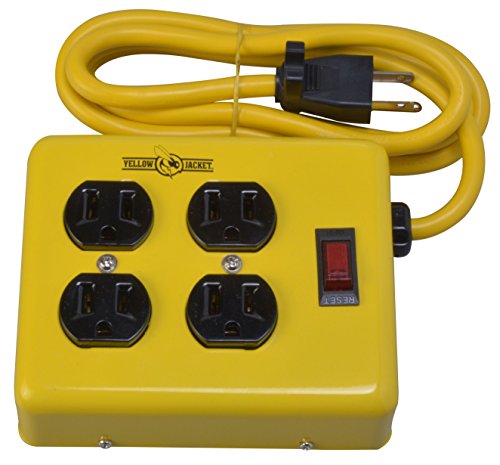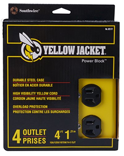 Yellow Jacket 2177N 4-Outlet Metal Power Block Adapter with Lighted Switch, 4-Feet, Yellow