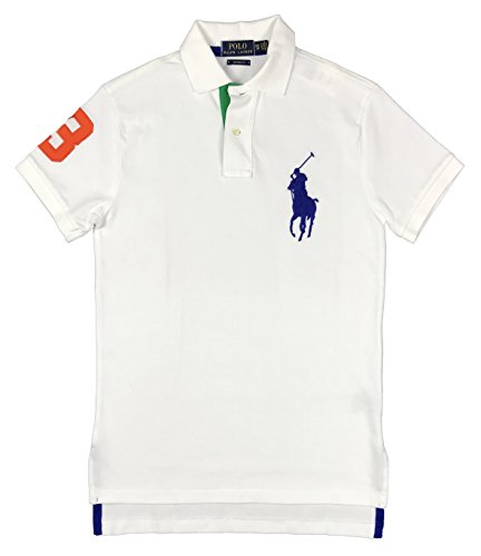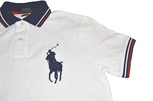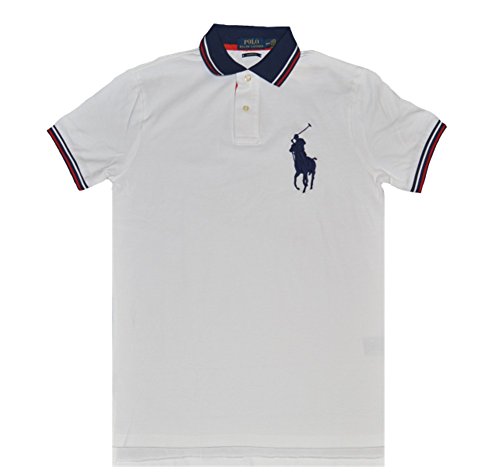 Polo Ralph Lauren Mens Custom Fit Big Pony Polo Shirt (XL, White/Blue Pony)