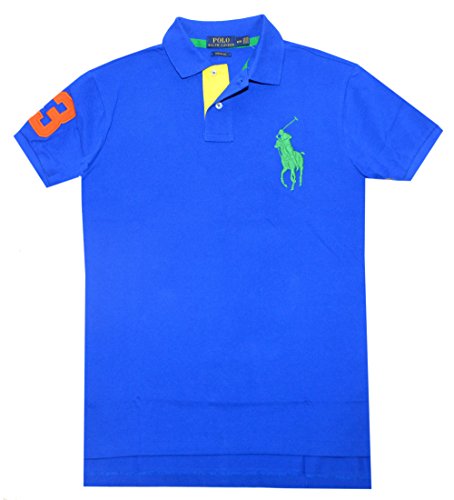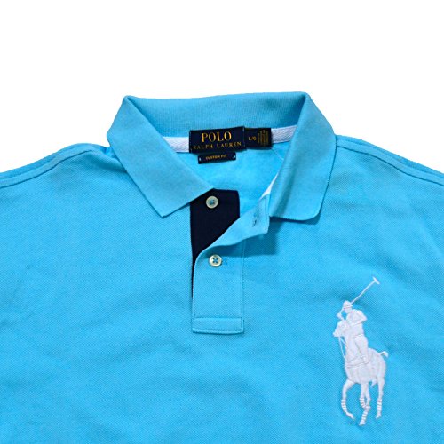 Polo Ralph Lauren Men Custom Fit Big Pony Logo Mesh Polo Shirt (S, Pacific royal/green)