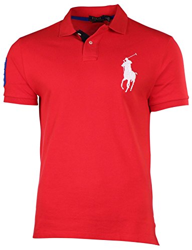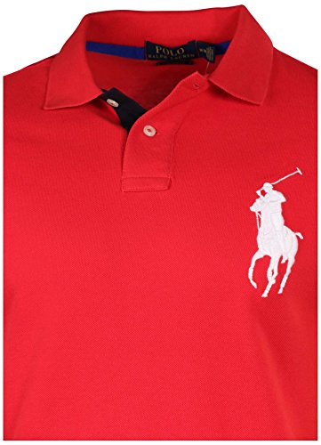Polo Ralph Lauren Mens Big Pony Mesh Custom Fit Polo Shirt (Small, Red White Pony)