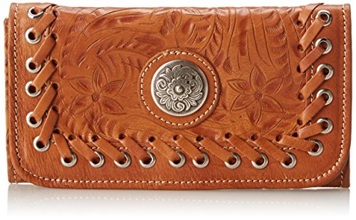 Studio : American West Accessories Publisher : American West Accessories Binding : Accessory Product Description American West handbags and wallets are made for the modern cowgirl's lifestyle This women's leather wallet features a secure snap closure at front. Interior flaunts 13 credit card slots, 5 pockets and pocket for checkbook. Exterior has zipper coin pocket. Women's wallet measures 7 1/2" x 4". Imported. 0
