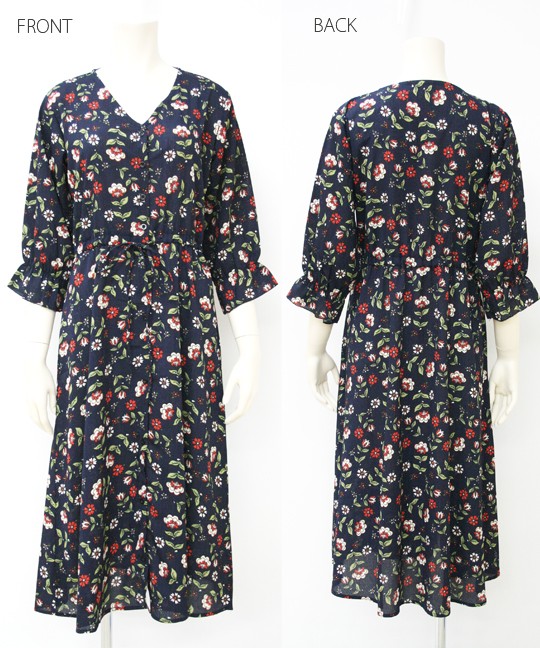 | 実寸 | 着丈:115 肩幅:39 身幅:96 ウエスト:74-96 袖丈:42 袖口:20-11 裾幅:104 |