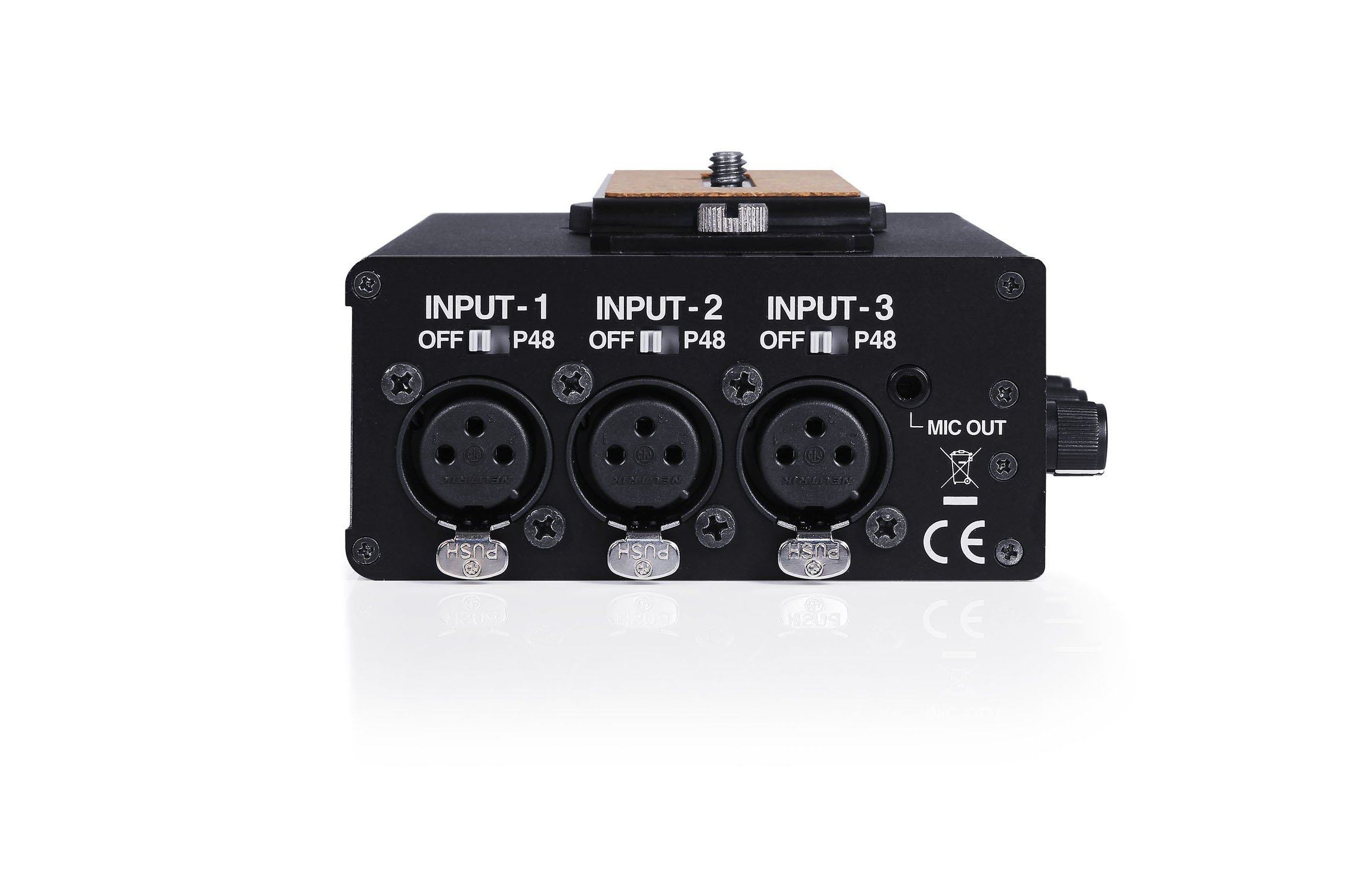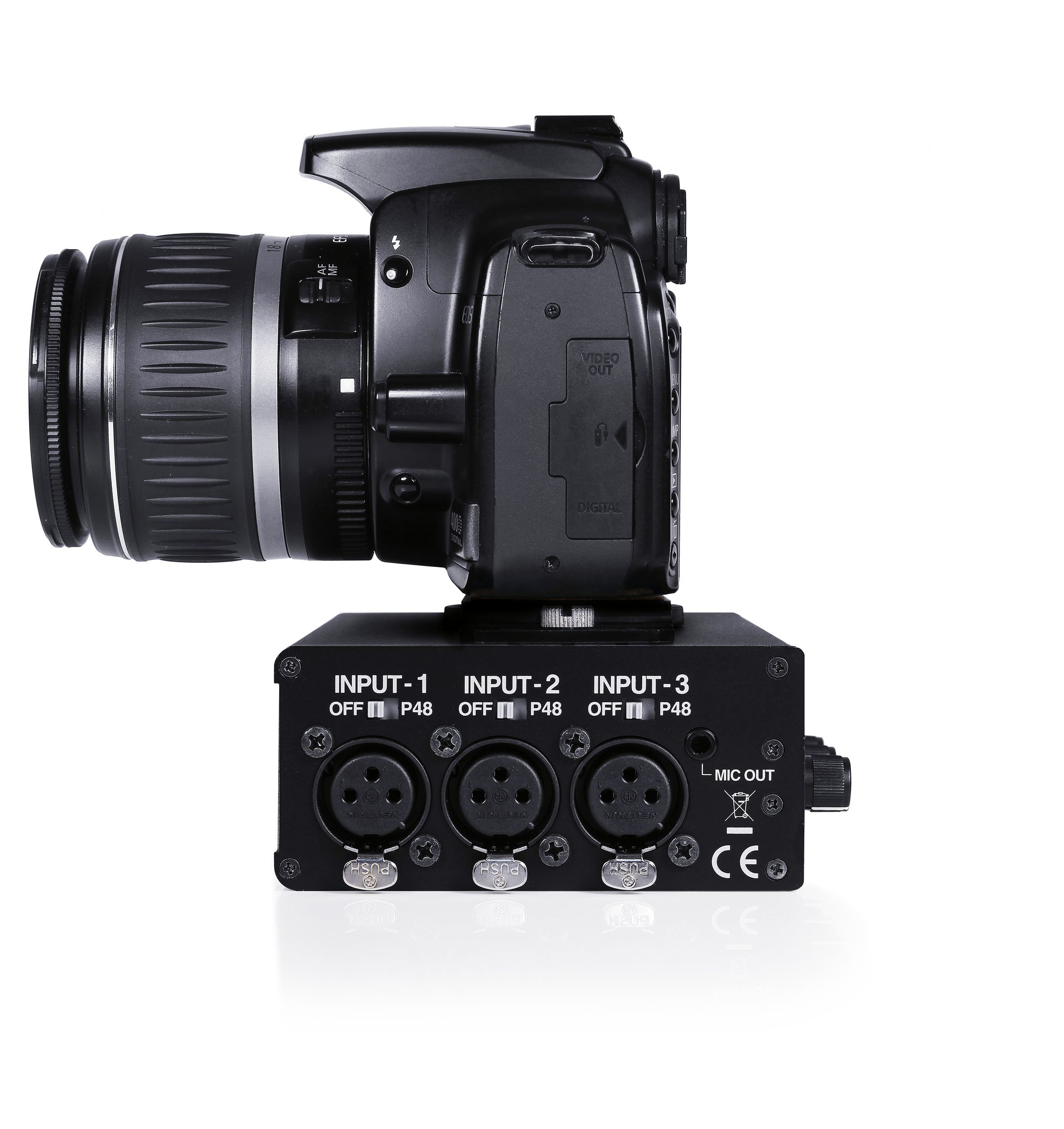 3ch audio mixer & stereo recorder best suited for taking moving pictures with camera.
