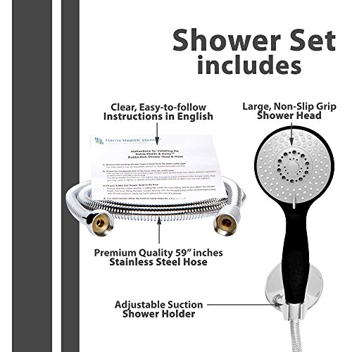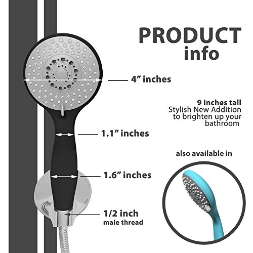 Rubba Dub New Luxury Handheld Shower Head & Hose + FREE Holder! Best Shower Guarantee! Non-slip Grip, 4 Function Handshower For Ultimate Relaxation. Add Contemporary Style To Your Bathroom Today!