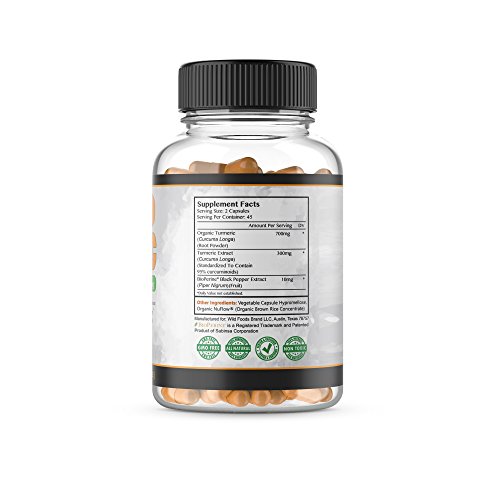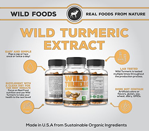 -. Feature : Wild Turmeric Extract contains heavily researched curcumin, which is thought to have anti-inflammatory effects in the body, aiding in joint pain, improved digestion and circulation, and overall nervous system improvement and immune function. / Turmeric is combined with black pepper extract to increase bioavailability and absorption of curcumin in your body. Vegan and vegetarian friendly. 3rd party batch tested. / All-natural Real ingredients for the best results. NON-GMO, no artificial ingredients or preservatives, no gluten, no wheat, no dairy, no soy, no sugar. Made in the US in a GMP, FDA-registered facility. / Who we are: Wild Foods specializes in premium, small-batch ingredients from small producers around the world. The Wild product line is and will always be soy-free, gluten-free, preservative-free, and toxin-free. / Use code WILDSAVE at checkout when you Buy 2, 3, 4, 5, 6, 7 or more products and receive a higher discount for each tier! Mix and match any Wild Foods products. 100% MONEY-BACK GUARANTEE in the unlikely event you are not fully satisfied.