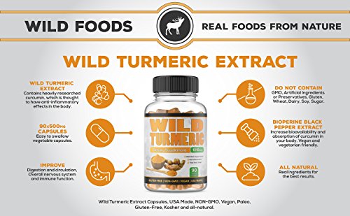 -. Title : Turmeric Extract Curcumin 95% Cuccuminoids with Bioperine Black Pepper Extract, High Potency and Absorption Supplement by Wild Foods, 90 count, 500mg, USA Made