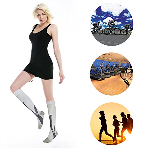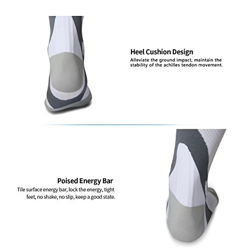 - RECOMMENDED DESIGN – Our compression socks fit closely from your toe to leg, energize your skin. They are applied integration comfortable breathable and quick-drying fabric, reduce muscle soreness, thus feel the immediate comfort. We thicker ankle fabric area, more compact compressed weave, reduce muscle vibration and fatigue to prevent sprained ankle. Cushioning between your toes which is seamless, widening and thickening. Use it every day, night or both.