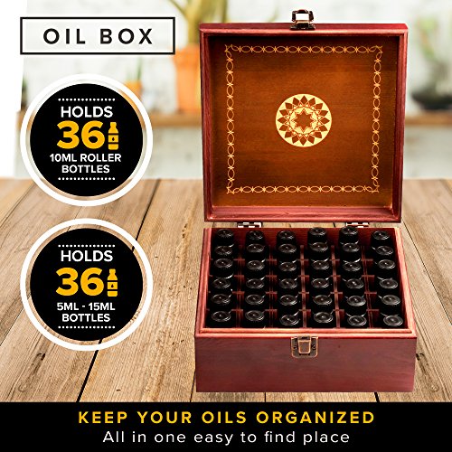 Beautiful Essential Oil Box 36 Bottle - Holds 5-15ml &10ml Roller Bottles - Free Roller Bottle Opener & 192 Essential Oil Labels - Foam Base To Protect The Glass On...