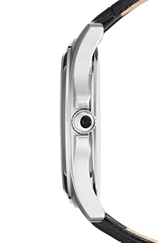 -. Feature : Diamond Marker Multifunction Leather Strap Band White Dial Watch / A lone diamond and a crocodile-leather wristband accentuate the distinguished style of this quartz-powered, stainless-steel watch. / 44mm case; 20mm band width. Buckle closure. / Day and date function. Mineral crystal face. / Mineral crystal face. Stainless steel/diamond/leather.
