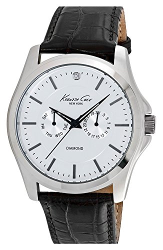 -. Title : Kenneth Cole 10022310 Diamond Marker Multifunction Leather Strap Band White Dial Watch
