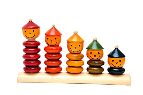 This Package contains 4 wooden baby rattles. #1.Roly-poly toy - Size(LXHXW ) 11x6x6 cms - Weight 72 grams. #2. Cup and Ball - Size(LXHXW ) 18x5x5 cms - Weight 92 grams. #3. Peppy 5 - Size(LXHXW ) 21x12x4 cms - Weight 225 grams. #4. Stacker windmill - Size(LXHXW ) 13x5.5x5x5 cms - Weight 100 grams. These toys are hand made by artisans, lacquer painted with natural organic colors. Colors may varyFeature