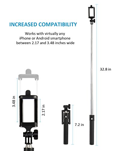 LIGHT AND COMPACT: The selfie stick will fit in your handbag, making it ideal for a spontaneous selfie – at only 11” long when retracted, this iphone selfie stick iphone can fit into any small bag.