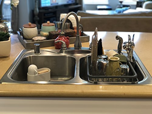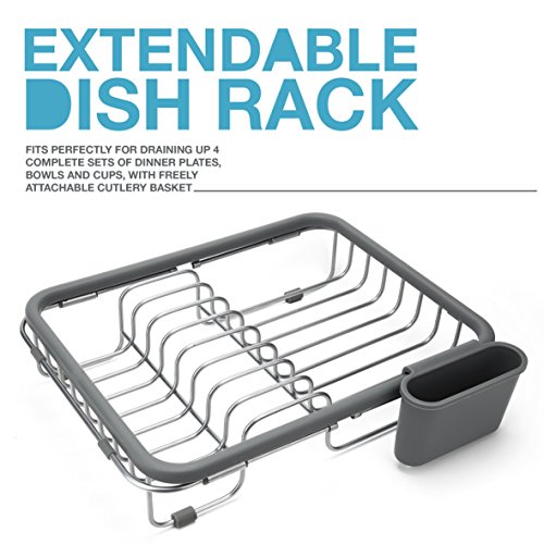 -. Brand : Shanik -. Color : Gray -. EAN : 0864218000333 -. Feature : EXPANDABLE DISH DRYING RACK - DIMENSIONS 14*10.9*3.2 INCHES - Modern and space-saving design with an expandable option adapts easily to all sink models and the small plastic parts attached on the expanding parts will protect your sink and kitchen counter from scratches / PRACTICAL DRAINER - Place it wherever you want - Shanik's dish rack expands for use over the sink, in the sink on the counter. The best kitchen drainer is also suitable for draining fruit or salad - saving time and space; / PREMIUM QUALITY DISH RACK - 100% ANTI-RUST - this dish rack is made of anti-rust materials with plastic accents make this dish draining rack strong and durable / CUTLERY DRAINER - Our expandable dish drainer comes with a detachable plastic drainer, where you can put your cutlery. / 100% SATISFACTION GUARANTEE OR YOUR MONEY BACK. We guarantee you'll love this wonderful product. But if you're not satisfied with it, please get in touch with us. We will gladly give you a 100% refund within 30 days of purchase. No questions asked. -. MPN : 43237-2 -. PartNumber : 43237-2 -. ProductGroup : Kitchen -. ProductTypeName : KITCHEN -. Title : Expandable Dish Draining Rack - Over the Sink Dish Drainer, Dish Rack In Sink Or On Counter With Utensil Holder -. UPC : 864218000333