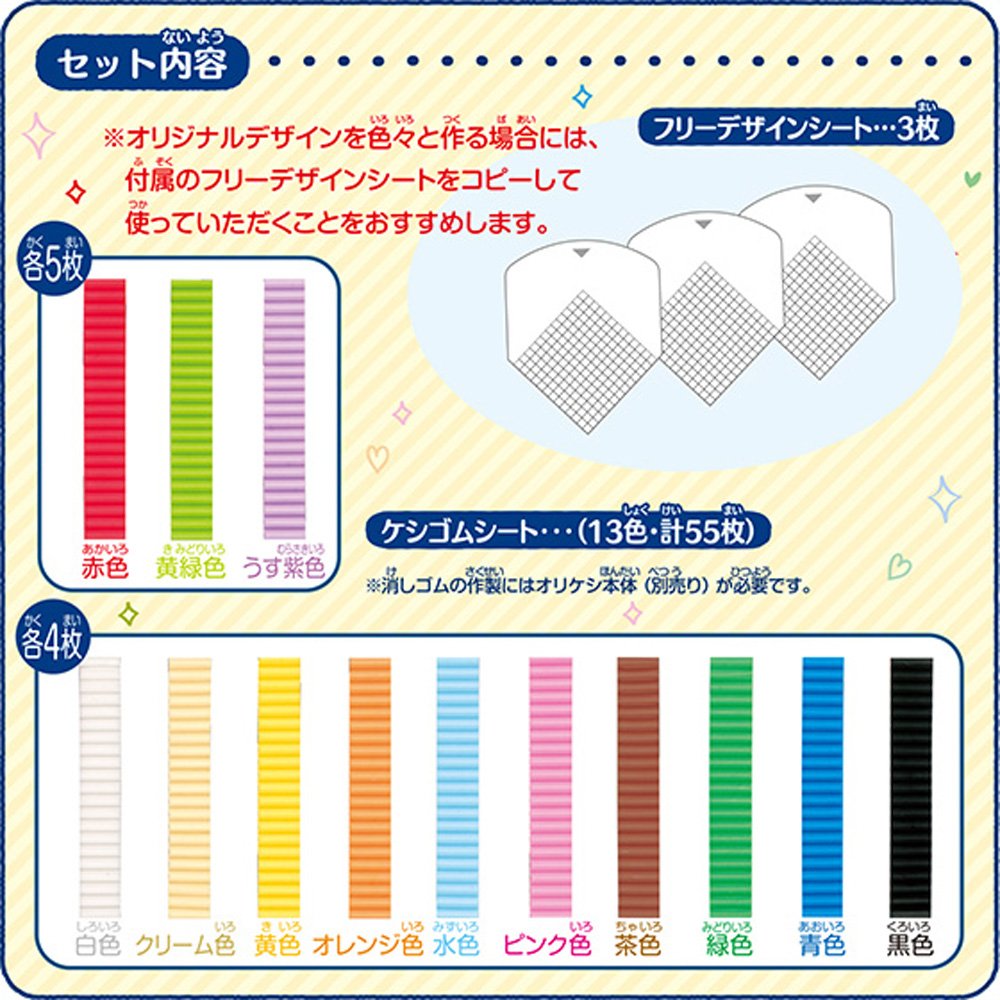 Using the included free design sheet, you can also make your own original design keshi rubber !! [Contents of set] Keshigomusu sheet 13 colors 55 sheets, free design sheet 3 sheets