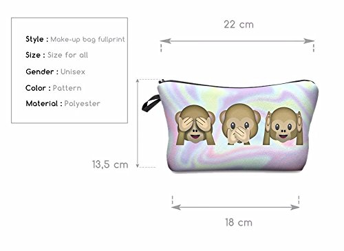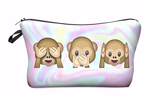 Awesome See No, Speak No, Hear No Evil Monkey Printed Rainbow Zippered Makeup Cosmetic Bag