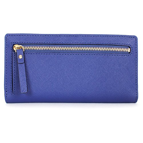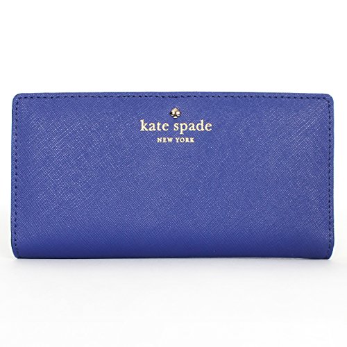 -. Brand : kate spade new york -. Color : Emperor Blue -. Department : womens -. EAN : 0098689870878 -. Feature : Material: Genuine leather / 14-karat light gold plated hardware / One small exterior zipper pocket / Includes nine card slots, four bill pockets and ID window / Measurements: 4''h x 7.6''w x 0.8''w -. PackageQuantity : 1 -. ProductGroup : Shoes -. ProductTypeName : HANDBAG -. Title : Kate Spade New York Mikas Pond Stacy Emperor Blue -. UPC : 098689870878 Material: Genuine leather.