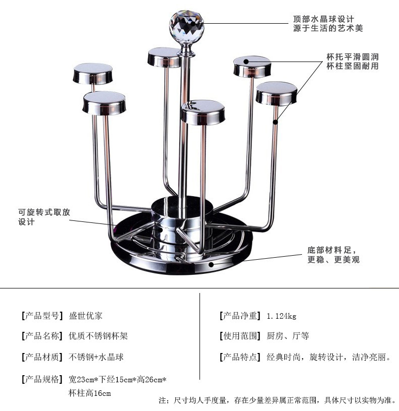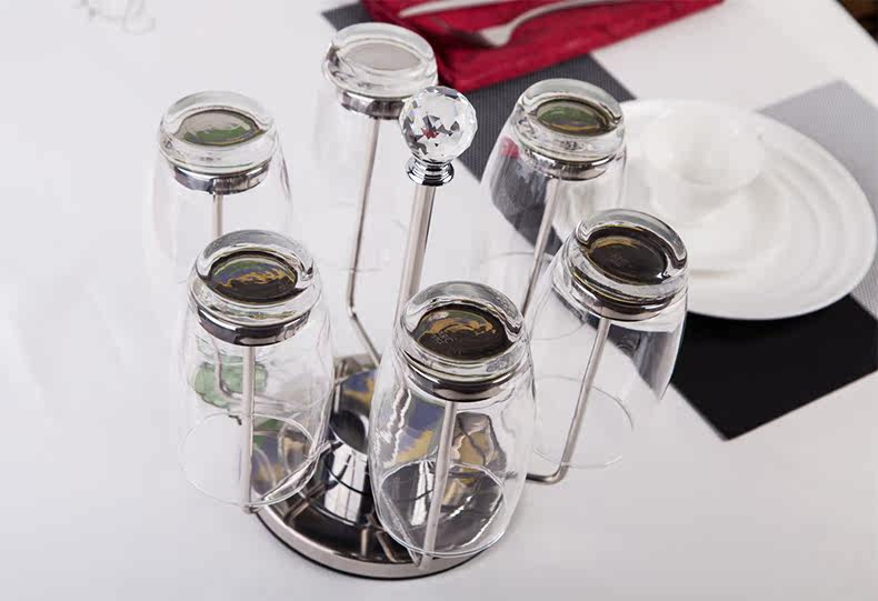 创意304不锈钢沥水杯架水杯挂架玻璃杯子架厨房旋转茶酒杯沥干架