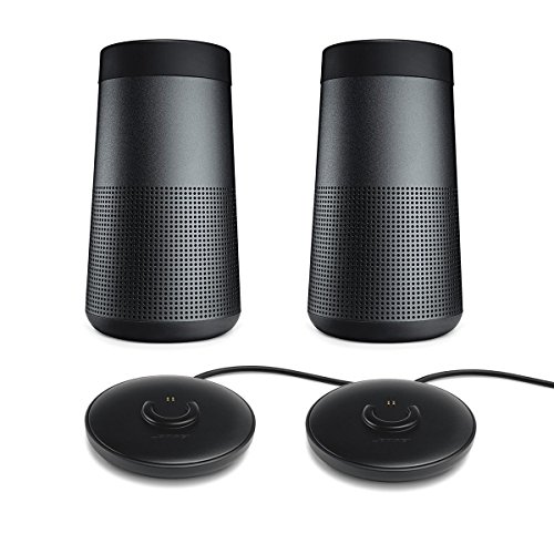 -. Binding : Electronics -. Brand : Bose -. Color : Black -. EAN : 0744271623543 -. Feature : This Bundle contains: (2) Bose SoundLink Revolve Bluetooth Speaker - Triple Black & (2) Bose SoundLink Revolve Charging Cradle / Pair 2 speakers for a true stereo sound - instruments and vocals will naturally separate and spread across an immersive soundstage. / Easy-to-use and easy-to-carry 1.5 lb. speaker puts out great sound wherever you take it / Cylindrical design creates an enjoyable listening experience in a 360-degree pattern / Near Field Communication allows button-less Bluetooth pairing with your NFC-enabled device, USB charging port keeps your smartphone or tablet juiced up while you're listening to music -. Label : BOSE -. Manufacturer : BOSE -. Model : 739523-1110x2_782298-0010x2 -. MPN : 739523-1110x2_782298-0010x2 -. PackageQuantity : 1 -. PartNumber : 739523-1110x2_782298-0010x2 -. ProductGroup : Speakers -. ProductTypeName : PORTABLE_AUDIO -. Publisher : BOSE -. Studio : BOSE -. Title : Bose SoundLink Revolve Bluetooth Speaker, Triple Black - Pair for a True Stereo Sound w/ Charging Cradles - Bundle -. UPC : 744271623543