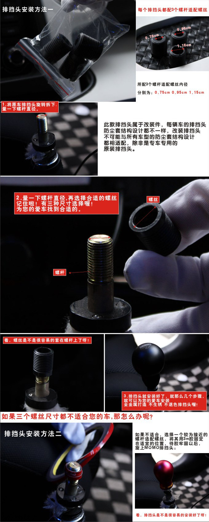 手动档排档头都是通用的,不管原车档杆口径大小,都能用!