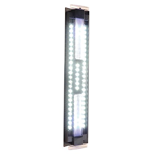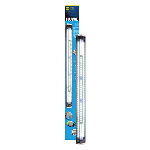 The Fluval Ultra Bright LED Strip Light has three rows of 7K LED Daylight Bulbs to produce similar light intensity if a twin tube strip light but uses less energy. The light is excellent for fish-only marine tanks or freshwater, low-light planted tanks (such as crypts, Anubis and java fern). The 7K LED band provides better color rendering and a natural shimmering effect. Both ends of the light have extendable leg supports that expand to fit wider tanks. The light has a single power cord and a single switch that allows either all LEDs ON, only the blue LEDs ON (for simulated moonlight) or OFF. The Fluval Ultra Bright LEDs are designed to last 20,000 hours, providing over 5 years of lighting under normal operation.Feature