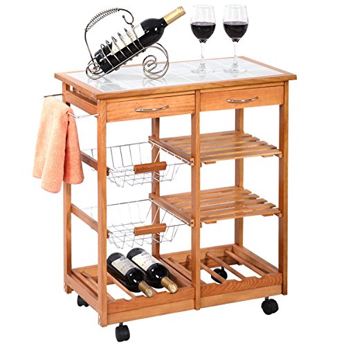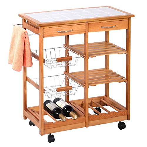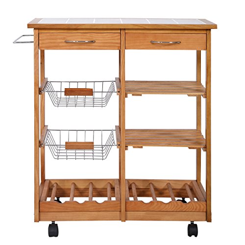 Studio : Giantex Publisher : Giantex Product Description This Is Our Beautiful Wood Kitchen Trolley Cart Which Has Double Drawer,Two Chrome Plated Pull Out Baskets And Two Other Pull Out Shelves. It Large Storage Space Makes It A Perfect Addition To Anyone's Apartment Or Home And Is Ideal For Adding Extra Counter Space To Your Kitchen. Don't Hesitate To Buy It Now! 0