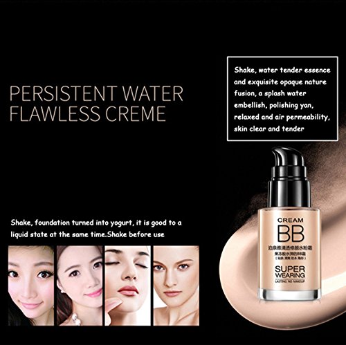 -. Feature : Concealer:A besmear gently, can cover up fleck, dark heavy skin, pore bulky etc. / Shape the transparent skin Moisturizing: It contains whitening and moisturizing repair composition, protects skin from UV rays and environmental violations / Close skin: Powdery bottom smooth easy to push, close to the skin, resistance sweat sebum secretion effect is very good, to keep lasting beauty makeup look / Simple to use: Shake before use, hands touch, the makeup simple, convenient. / Waterproof and sweat proof: Waterproof and sweat, persistent not to take off makeup.